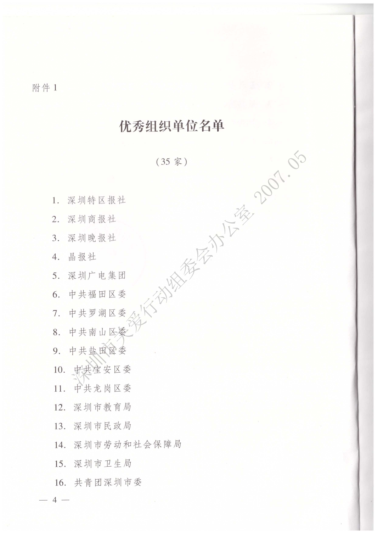 深圳市精神文明建設(shè)委員會(huì)關(guān)于表彰第四屆深圳關(guān)愛行動(dòng)先進(jìn)集體和先進(jìn)個(gè)人的決定