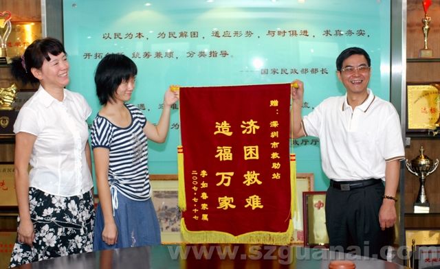 丹丹母女為市救助站領導贈送錦旗(陳錦輝攝)