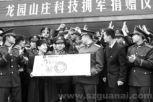 關(guān)愛部隊,科技擁軍。2007年01月25日上午,深圳某公司(龍園實業(yè)發(fā)展有限公司)向深圳邊防七支隊捐贈100萬元的科技擁軍專款。 據(jù)了解,捐贈的100萬元科技擁軍資金被全部用于部隊購買電腦等高科技設(shè)備,以支持部隊現(xiàn)代化信息建設(shè),為官兵們掌握現(xiàn)代化科技知識提供堅強有力的條件。