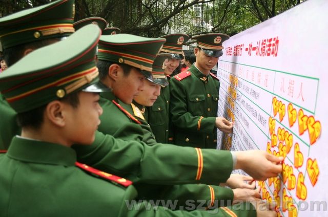 2007年2月5日上午,深圳公安邊防支隊在機關(guān)舉行了捐款捐物儀式,在當(dāng)天的活動中,該支隊官兵共捐款40517元,捐衣物118件,鞋15雙。( 曾燁 通訊員 黃慶鋒 陳森陽 攝影報道)