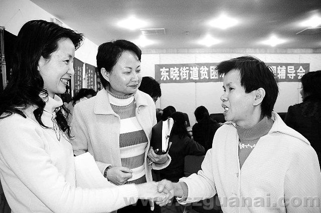 2007年2月27日,聽完“單親貧困母親心理輔導(dǎo)會”后,東曉街道一位單親母親握著婦聯(lián)領(lǐng)導(dǎo)的手說:“報告太精彩了,我一定會堅強起來!”。(袁糧鋼 戴曉蓉 翁惠娟攝)