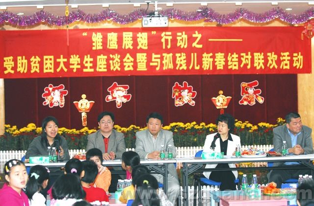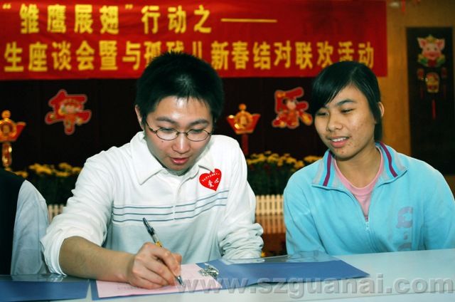 受助大學生(左)與福利中心孤兒簽訂結對協(xié)議書(陳錦輝攝)