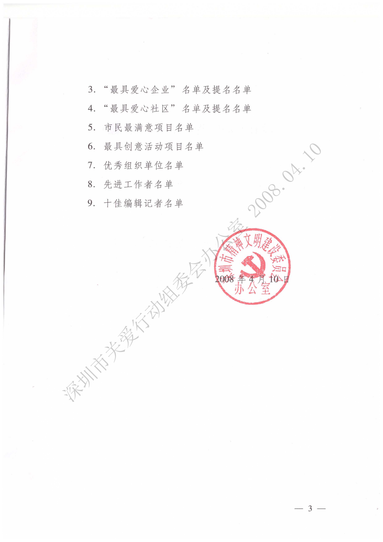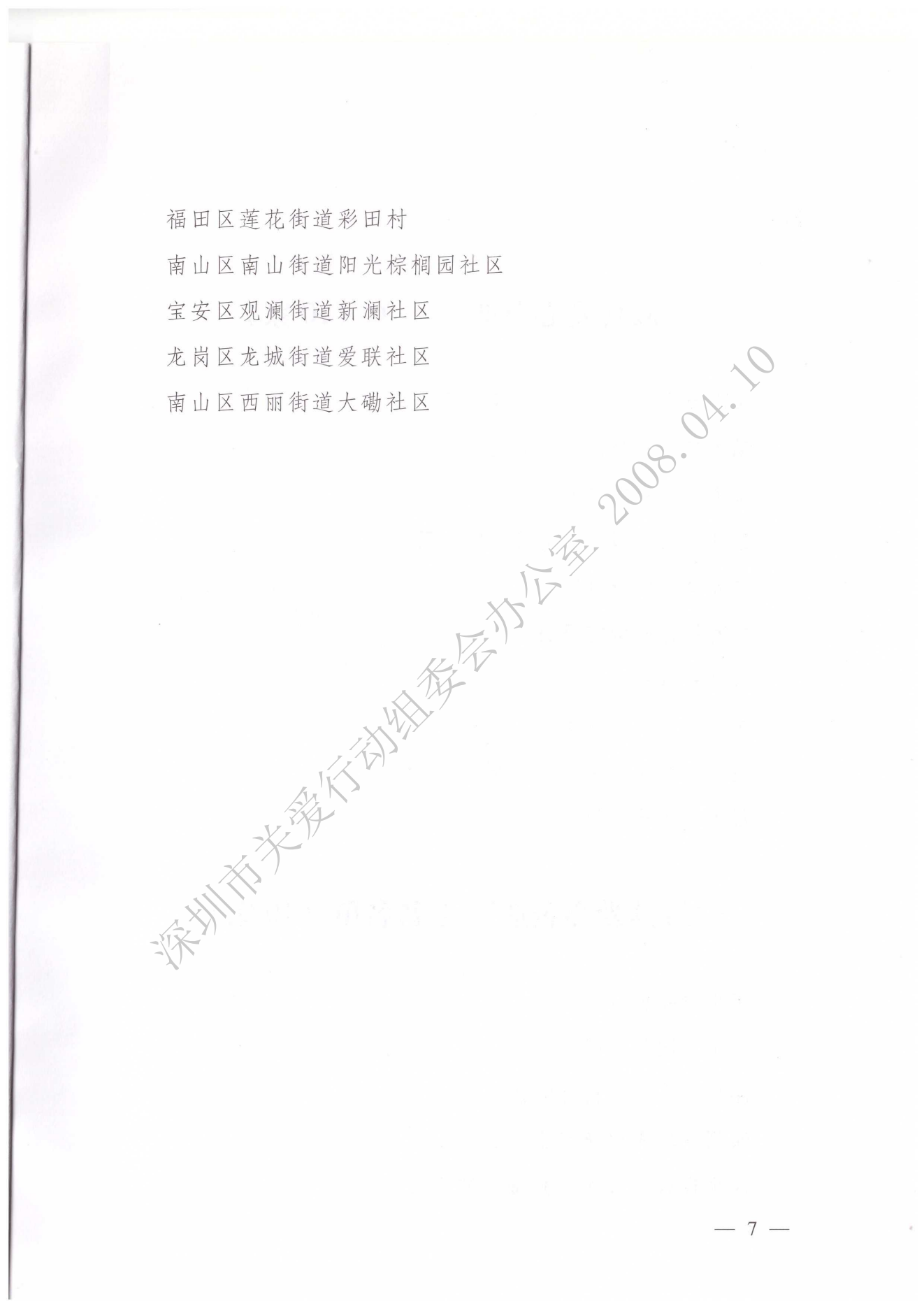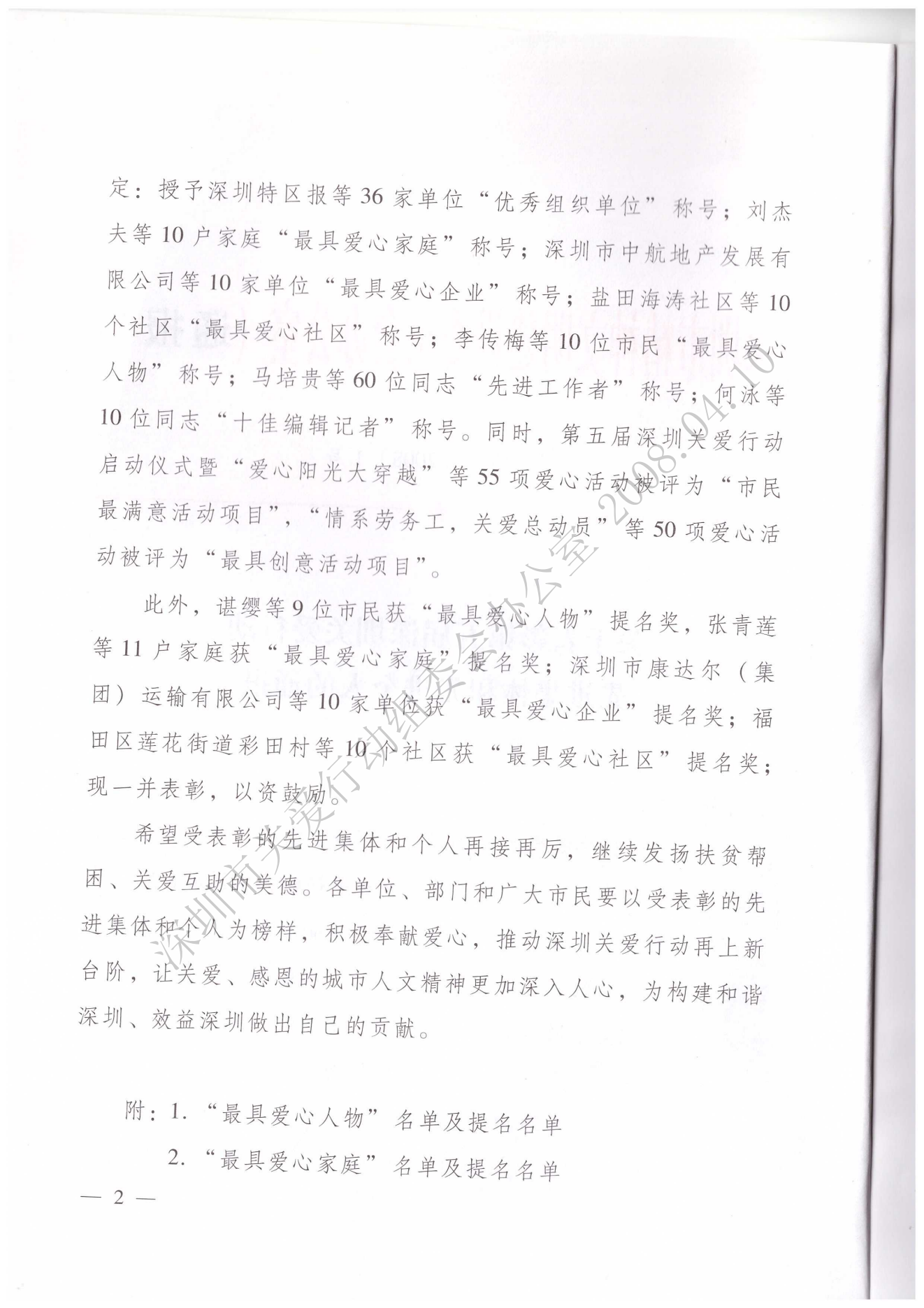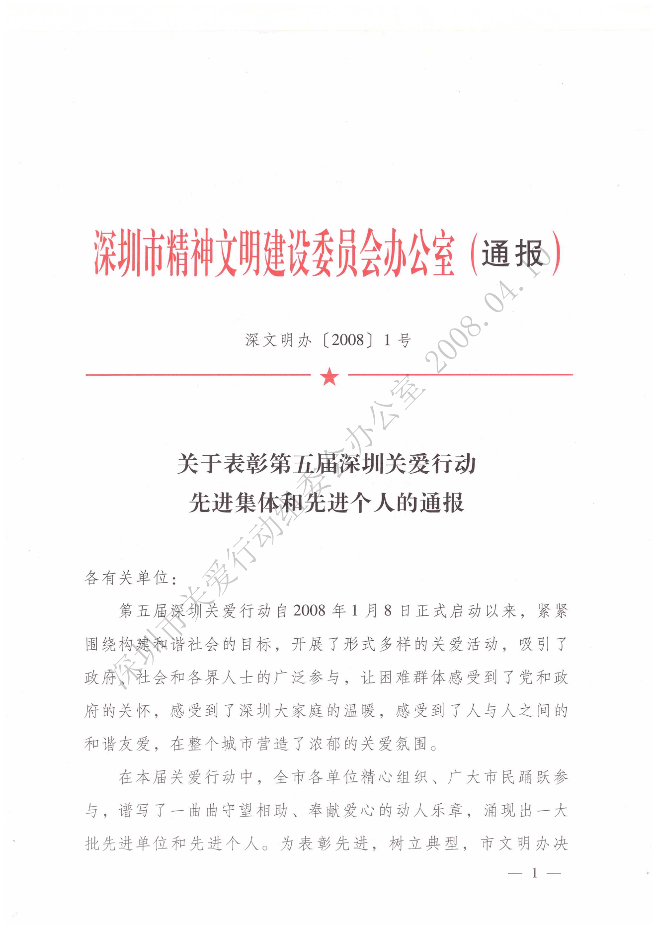 關于表彰第五屆深圳關愛行動先進集體和先進個人的通報