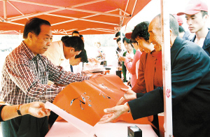 書法家為市民送春聯獻愛心?! ”緢笥浾?陳富 攝