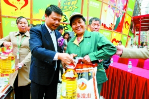 2008年1月16日,低保戶喜領(lǐng)慰問品。 本報(bào)記者 陳發(fā)清攝