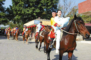 海豚大使騎馬護送海豚到新家。