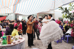 綿竹市富新鎮(zhèn)友花村村民鞏國慶在春節(jié)迎娶新娘。