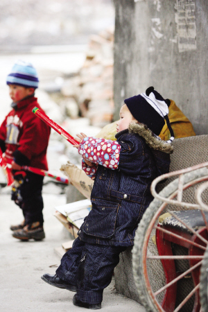 ▲汶川縣映秀鎮(zhèn)楓香村兩名穿新衣過春節(jié)的兒童。本報(bào)記者 柳影洲攝