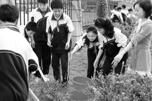 昨日,寶安區(qū)新湖中學(xué)的同學(xué)們親手種下一棵棵果樹,并把在校園里植樹的地方命名為“百果園”。小樹與同學(xué)們一同成長,為校園增添了一片新綠。 本報(bào)記者程海昆 通訊員 文建軍 攝