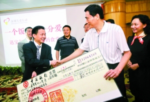由市關(guān)愛辦發(fā)起的向甘肅隴南災(zāi)區(qū)捐建“媽媽食堂”愛心助學(xué)活動(dòng)在深圳引起熱烈反響,昨天上午,深圳迅寶環(huán)保股份有限公司董事長(zhǎng)劉關(guān)清向市關(guān)愛辦主任、深圳報(bào)業(yè)集團(tuán)社長(zhǎng)黃揚(yáng)略遞交了捐建“媽媽食堂”首期啟動(dòng)資金50萬(wàn)元支票。在捐贈(zèng)儀式上,黃揚(yáng)略表示,深圳的發(fā)展離不開全國(guó)人民的支持,迅寶公司的義舉是深圳回報(bào)全國(guó)人民的一個(gè)生動(dòng)體現(xiàn)。至今,由市委、市政府倡導(dǎo)發(fā)起的深圳關(guān)愛行動(dòng)已成功開展六屆,吸引了成千上萬(wàn)廣大市民的熱情參與,成為深圳提升城市人文精神、開展文明城市創(chuàng)建的一張亮麗名片,希望更多的愛心企業(yè)和企業(yè)家參與到這個(gè)活動(dòng)中來(lái)。