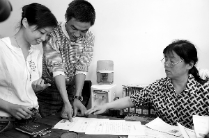 隨著工作人員將鋼印壓在照片的一角,簡陋的辦公室里響起了歡呼聲和笑聲。4月20日下午5時(shí)許,位于北川縣環(huán)境保護(hù)局內(nèi)的北川羌族自治縣安昌鎮(zhèn)民政辦臨時(shí)辦公室里,人們見證了陳巖和彭露辦理結(jié)婚手續(xù)的一刻。本報(bào)記者和愛心企業(yè)盛寶糧油的職員都是這對(duì)在震災(zāi)中相愛的男女的結(jié)婚見證人。