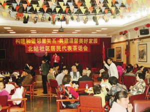 圖為北站社區(qū)居民進(jìn)行鄰里關(guān)系茶話會(huì)。