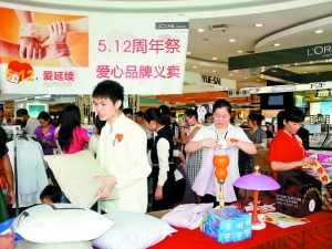 在為災區兒童圓夢的同時,天虹還在其深南天虹、天虹購物廣場、南山常興天虹、國貿天虹、寶安創業天虹、布吉天虹多個商場開展義賣、募捐活動。憑借其分店多、渠道多的優勢,在更廣的范圍內發動深圳人為災區人民奉獻愛心。義賣活動得到了舒雅、AO2、杰西、季候風、臣楓、陽光鼠、可可鴨等知名品牌的大力支持。整個義賣募捐活動共籌款13.4萬元,接收捐贈物資2000余件。其他天虹分店也開展了不同形式的活動,積極為災區重建籌款。龍華天虹、松崗天虹等商場員工紛紛解囊,為災區獻愛心;布吉天虹的愛心顧客甘女士更為孩子們捐贈了116個新書包;寶安前進天虹、寶安創業天虹、沙井天虹、松崗天虹在5月12日當天還作為“愛心傳遞站”積極配合寶安日報和寶安區慈善會聯合舉辦的大型賑災活動,積極籌款……