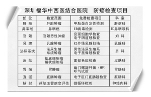 深圳福華中西醫(yī)結合醫(yī)院全免費防癌檢查項目