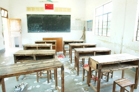 廣東省河源市紫金縣古竹鎮欖溪小學的教室和桌椅都已破舊不堪。