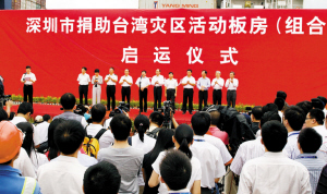 “災難面前,兩岸同胞再一次譜寫了情同手足、風雨同舟,共同抵抗災害的動人篇章。希望這批活動板房在送給臺灣同胞物質上的資助的同時,更能帶給他們戰勝災害的信心?!编嵙⒅姓f。李意珍代表市委市政府致辭時表示,目前深圳社會各界已經行動起來,正積極通過各種渠道捐款捐物,表達愛心。
