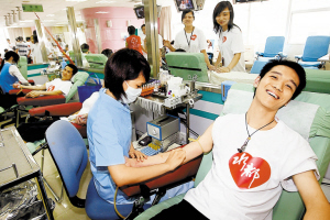 市民來到市血液中心獻血點捐血獻愛心。許業周 攝