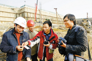 深圳攝影學會的攝影家來到機場擴建工地用一次性相機為建設者拍攝照片。  深圳特區報記者 齊潔爽 攝