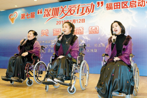 ▲在福田區啟動儀式現場,殘疾人用歌聲表達感恩之情。  深圳特區報記者 梅戈 攝