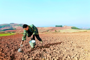 寧中才把肥料放進(jìn)小坑,只等老天下一場(chǎng)透雨。