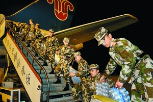 ?。丛拢保等樟璩浚睍r13分,由深圳特檢站、深圳邊防支隊、深圳武警醫院、武警六支隊、七支隊等單位110名官兵組成的廣東公安邊防總隊赴青??拐鹁仍t療隊乘坐南航cz8889航班,載著20噸救災物資,從深圳寶安機場飛往西寧。