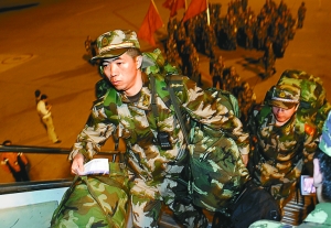 官兵正在登機。