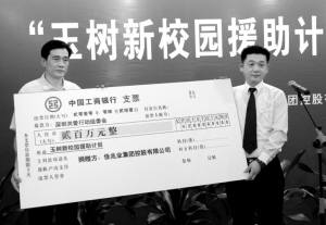 青海玉樹地震發(fā)生后,深圳各界人士紛紛行動(dòng),捐款捐物,表達(dá)深圳人民對災(zāi)區(qū)群眾的拳拳愛心。日前,胡錦濤總書記在玉樹慰問災(zāi)區(qū)群眾時(shí),在學(xué)校黑板上寫下“新校園,會(huì)有的!新家園,會(huì)有的!”市關(guān)愛辦、深圳報(bào)業(yè)集團(tuán)和深圳的愛心企業(yè)迅速行動(dòng)起來,積極籌備對災(zāi)區(qū)的新校園建設(shè)援助。佳兆業(yè)集團(tuán)在第一時(shí)間響應(yīng)號召,并于昨天捐資200萬元,與市關(guān)愛辦、深圳報(bào)業(yè)集團(tuán)共同啟動(dòng)“玉樹新校園援助計(jì)劃”。據(jù)介紹,承辦“玉樹新校園援助計(jì)劃”的深圳特區(qū)報(bào)社將會(huì)同主辦單位,在與災(zāi)區(qū)有關(guān)部門溝通后,首先用這批捐款為災(zāi)區(qū)購置一批緊缺的板房教室、桌椅、圖書、文具,緩解災(zāi)區(qū)學(xué)生校舍、學(xué)習(xí)用品緊缺問題,下一步,還將針對災(zāi)區(qū)困難學(xué)生啟動(dòng)長期助學(xué)計(jì)劃。