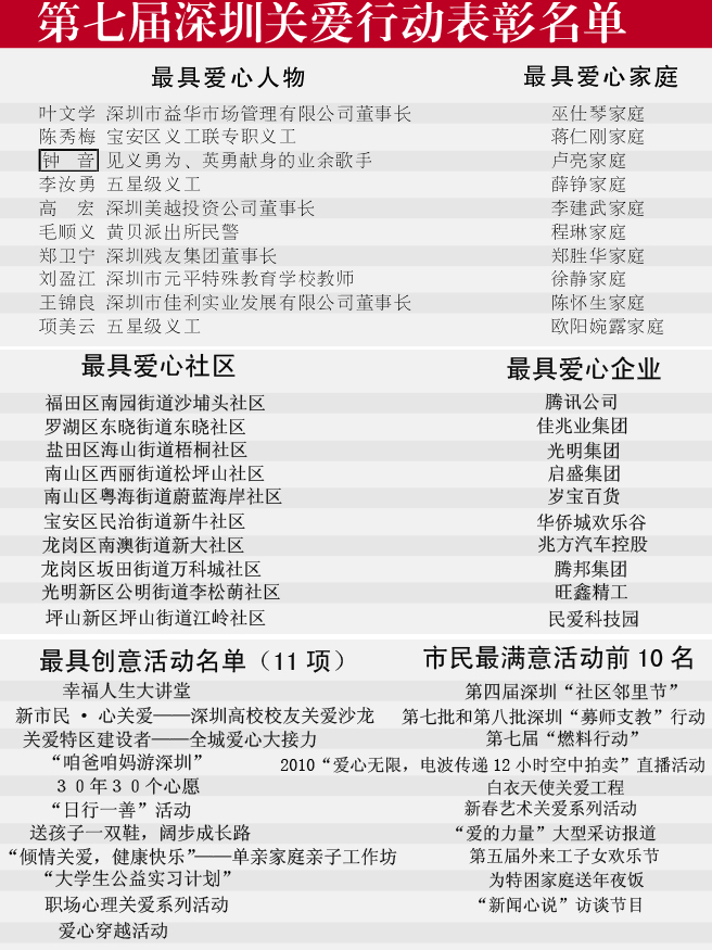 點(diǎn)擊查看第七屆深圳關(guān)愛行動表彰名單>>>?