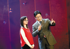 李汝勇的妻子和主持人白巖松一起講述身患尿毒癥仍堅持義工服務的最具愛心人物李汝勇的故事。 深圳特區報記者 許業周 攝