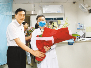 市關愛辦主任、深圳報業集團社長黃揚略為醫護人員送去鮮花。