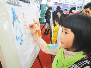 記者在現場看到,很多孩子在媽媽的帶領下都拿著畫筆在手帕上饒有興致地畫著畫。5歲半的劉玥姝小朋友毫不猶豫地在手帕上畫上了大樹和綠草,“我們要生活在一個綠色的環境中,有很多的花草樹木。”年輕的媽媽告訴記者,他們在孩子小時候就開始在孩子的書包里放一張手帕,就算用紙巾也要求只用一截。