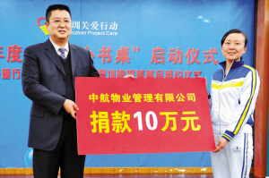 中航物業管理有限公司總經理朱俊春說,中航物業在致力于打造中國最值得尊重的物業管理服務集成商的同時,也積極投身公益慈善活動,協辦“愛心小書桌”活動就是最好的體現。去年協辦活動后,看到“愛心小書桌”活動取得了顯著的成果,因此今年公司繼續對活動給予大力支持,希望小書桌活動能繼續壯大。