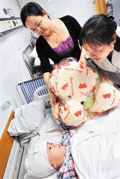????昨天一早,記者和威威的家人一起守候在手術室外。約半小時,威威就被推了出來。手術方案選擇從威威頭部截皮移植到腿上。主治醫生余旭明介紹,威威的植皮手術很順利,病情也趨于平穩,最快約兩周可出院。他的腿部會留下傷疤,需要繼續接受抗疤痕治療。若條件允許,最好在半年后根據膝關節的恢復情況做腿部整形。不過,由于腿部動脈血管和肌腱組織被硫酸灼蝕損傷嚴重,可能會留下瘸腿等后遺癥。