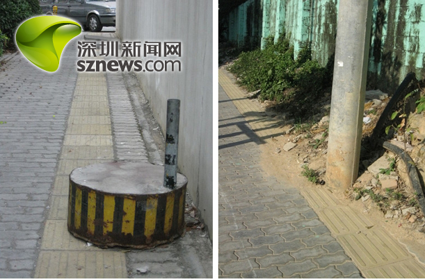 市民簡(jiǎn)小姐由于工作需要,經(jīng)常在福田區(qū)東奔西走。每天在路上,她發(fā)現(xiàn)福田區(qū)許多道路上的盲道設(shè)計(jì)、維護(hù)等存在一定問(wèn)題,“有些地方斑馬線更改后盲道還通往廢棄的斑馬線,順著盲道走有時(shí)候卻撞上了警示柱,拐個(gè)彎盲道就“消失”了……”,類似的情況并不少見(jiàn)。