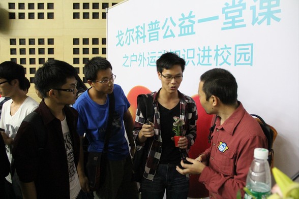 ????據(jù)了解,本次“戈爾科普公益一堂課”是繼8月份“市民大講堂”成功舉辦后,首次將戶外運動知識帶進(jìn)校園。深圳市登協(xié)講師以藏地旅行經(jīng)驗分享為主要內(nèi)容的講座,吸引了不少戶外運動愛好者前來,報告廳300個席位座無虛席,連過道上都坐滿了專程趕來的校內(nèi)外戶外運動發(fā)燒友。精彩的講座內(nèi)容讓現(xiàn)場不時爆出掌聲,特別是最后的互動問答環(huán)節(jié)把整場講座推向了高潮,意猶未盡的聽眾不斷向老師討教秘訣。通過本次講座,大學(xué)生們深入地了解了藏地文化及旅行要領(lǐng),喜歡騎行的趙同學(xué)不無感慨的講到,“從公益一堂課上我們學(xué)到了很多旅行攻略上學(xué)不到的東西,希望有更多像這樣的公益課堂給我們普及戶外運動知識,可以避免我們在旅途中走很多彎路,這樣的活動很有意義。”