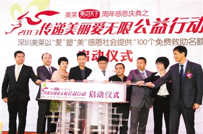 據(jù)悉,作為本年度深圳市醫(yī)療美容公益救助的重頭戲之一,“2013傳遞美麗愛(ài)無(wú)限公益行動(dòng)”由深圳美萊醫(yī)療美容醫(yī)院攜手深圳市社會(huì)公益基金會(huì)、南方都市報(bào)、中國(guó)財(cái)富及本市多家媒體共同啟動(dòng)。這是專(zhuān)門(mén)針對(duì)社會(huì)困難家庭、低保家庭、無(wú)醫(yī)保家庭、外來(lái)務(wù)工人員等人群的公益醫(yī)學(xué)美容救助活動(dòng),針對(duì)癥狀為面部四肢燒傷、五官畸形、皮膚疑難疤痕、疑難重度牙缺失、錯(cuò)頜畸形等,援助名額為100個(gè)。(記者 田 君)