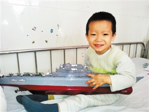 “你能坐上這船嗎?”小相前點了點頭。在得知小相前因為病情嚴重,無法到戶外乘船后,記者與愛心市民劉金利私下商量,既然孩子坐不了船,有個船模型也挺好。12月12日,在放棄外出乘船的行程決定后,愛心市民劉金利前往華強北買了一艘船模型,并于13日一早前往病房里,給小相前親自送上禮物。
