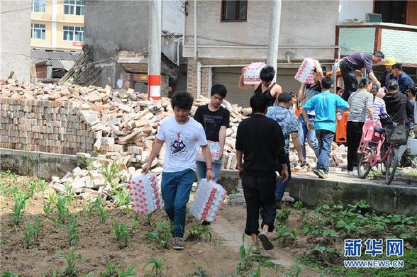 4月20日,寶盛鄉群眾在運送礦泉水。當日,四川雅安蘆山縣發生7.0級地震。其中蘆山縣的龍門鄉、寶盛鄉、太平鎮三地受災最為嚴重。新華社記者 江宏景 攝