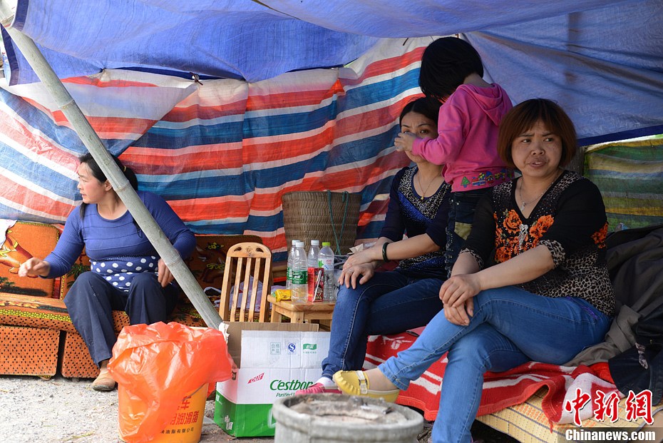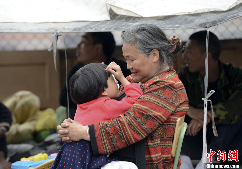 4月21日,四川省雅安市寶興縣靈關(guān)災(zāi)民安置點(diǎn)的老婦和孩童。中新社發(fā)廖攀 攝