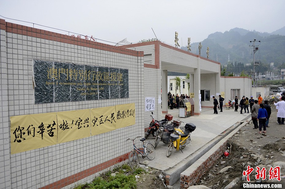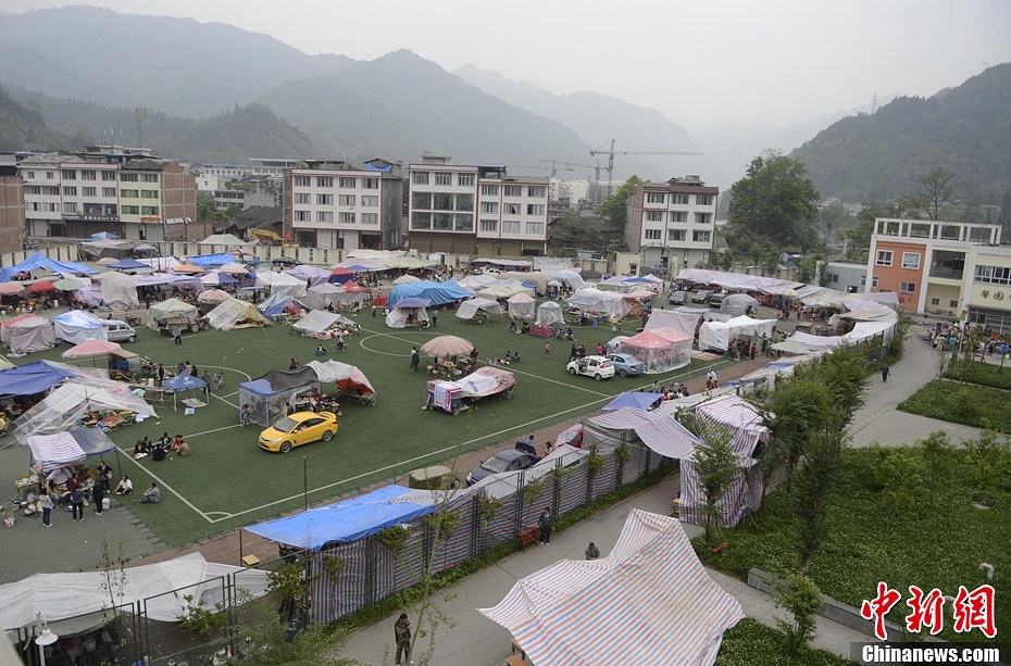 4月21日,四川省雅安市寶興縣靈關(guān)鎮(zhèn),由澳門援建的靈關(guān)中學(xué)設(shè)為災(zāi)民安置點(diǎn)。中新社發(fā) 廖攀 攝