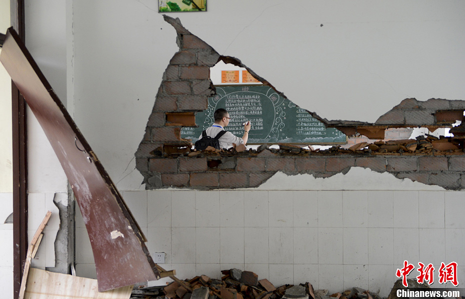 4月21日,四川省雅安市寶興縣靈關(guān)鎮(zhèn)靈關(guān)中學(xué)教室在地震中受損嚴(yán)重。中新社發(fā) 廖攀 攝