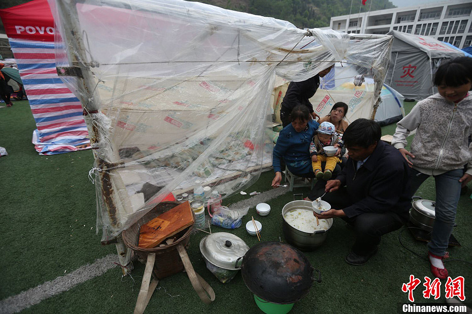 4月21日,四川省雅安市寶興縣靈關(guān)鎮(zhèn),靈關(guān)中學(xué)災(zāi)民安置點(diǎn)。廖攀攝