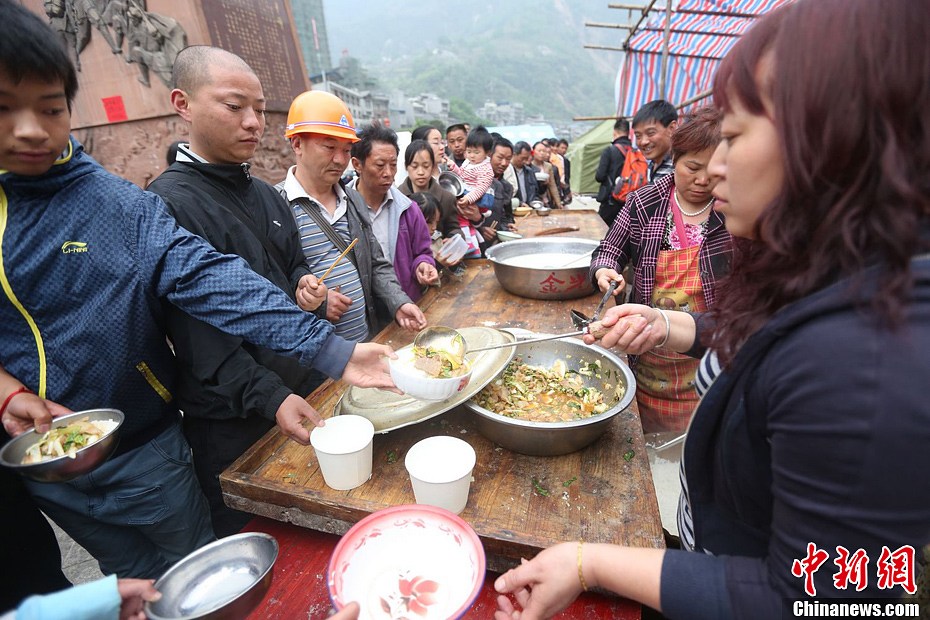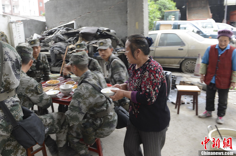 4月21日,四川省雅安市寶興縣靈關(guān)鎮(zhèn),該鎮(zhèn)居民在自家為前來救災(zāi)的官兵做飯。廖攀 攝