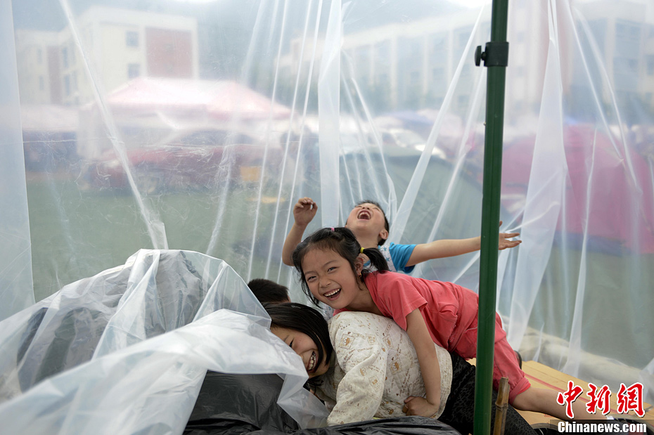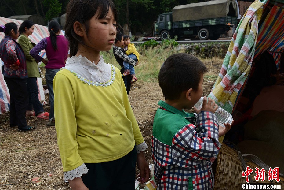 4月21日,四川省雅安市寶興縣靈關(guān)鎮(zhèn),靈關(guān)中學(xué)災(zāi)民安置點(diǎn)內(nèi)的孩童。廖攀 攝