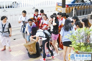 19日17時許,貴陽市實時氣溫29攝氏度,中山東路人行道上,一群好心市民圍著一名臥倒在路上的男子,喂他吃東西,喂他喝水。