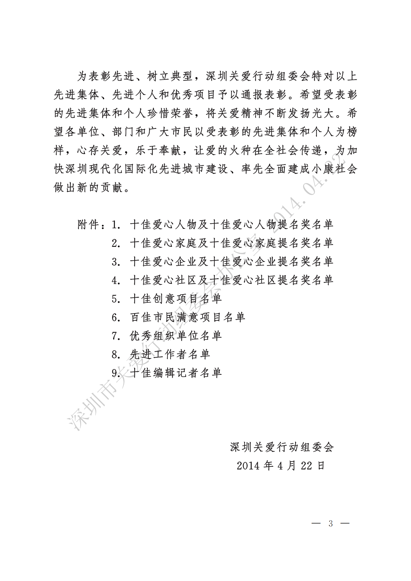 關于表彰第十一屆深圳關愛行動先進集體、先進個人和優秀項目的通報