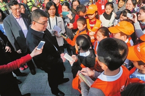 ????深圳晚報(bào)訊 (小記者 周千雅 羅揚(yáng)) 在昨天下午舉行的第十二屆深圳關(guān)愛行動“百點(diǎn)啟動”儀式暨“日行一善”親子志愿者團(tuán)成立儀式現(xiàn)場,一群身穿橙馬甲的深晚小記者格外活躍,他們還抓住機(jī)會采訪了深圳市委常委、宣傳部長王京生。