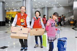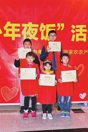 昨天上午,不少市民帶著小孩開開心心地去送愛心年夜飯。
