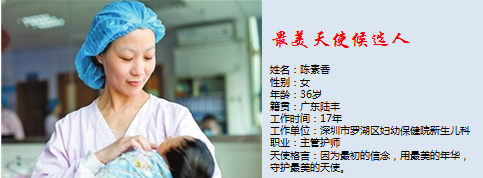 陳素香是深圳市羅湖區婦幼保健院新生兒科的一名主管護師。自1998年從廣東黃埔衛校畢業以來,已在護理崗位堅守17年。俗話說,“三分治療,七分護理”,這對于實施24小時家屬無陪制度的新生兒科來說,是最形象的寫照。
