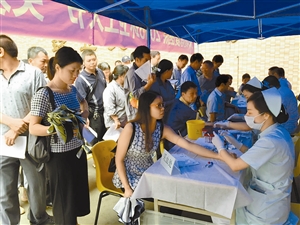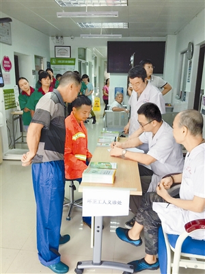 醫(yī)院對環(huán)衛(wèi)工人進行免費體檢。